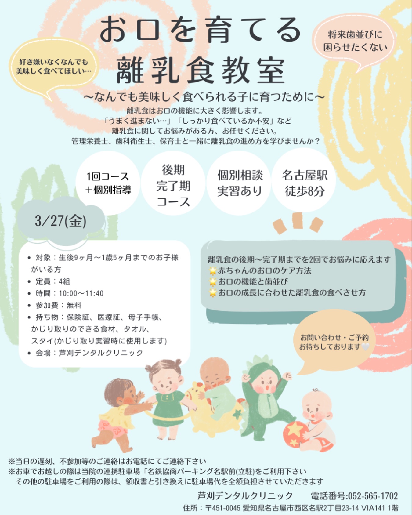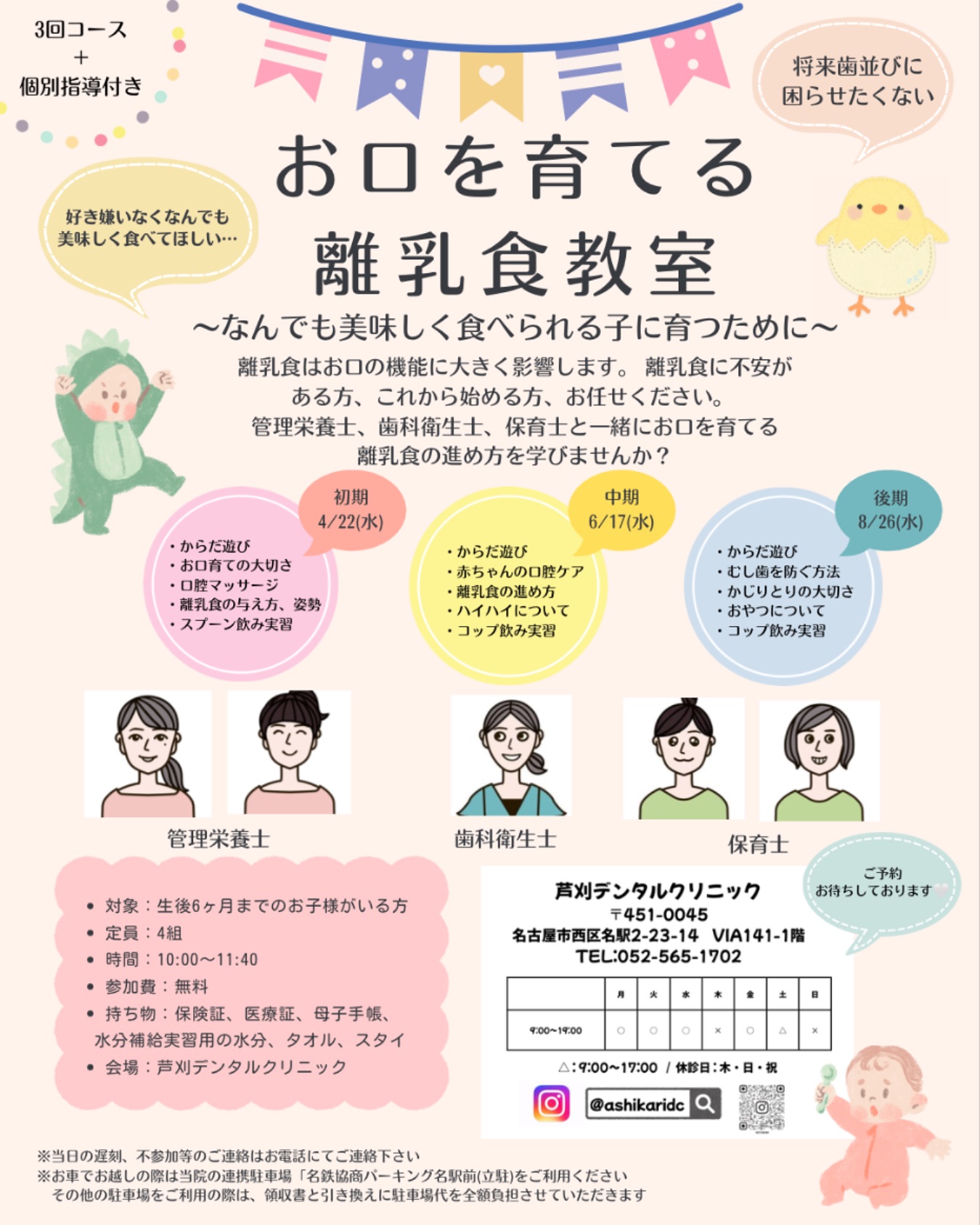 こんにちは!名古屋駅から徒歩8分のところにある芦刈デンタルクリニック管理栄養士の高橋です🌷当院では、お口を育てる離乳食…